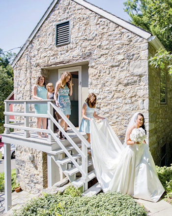 Ride in your horse-drawn carriage to this rustic and charming woodland getaway complete with a New Barn & Farmhouse, Gristmill, Stone Cottages, and a 250 year old Tavern for your elegant wedding. Our Village is exclusively yours for your special day.